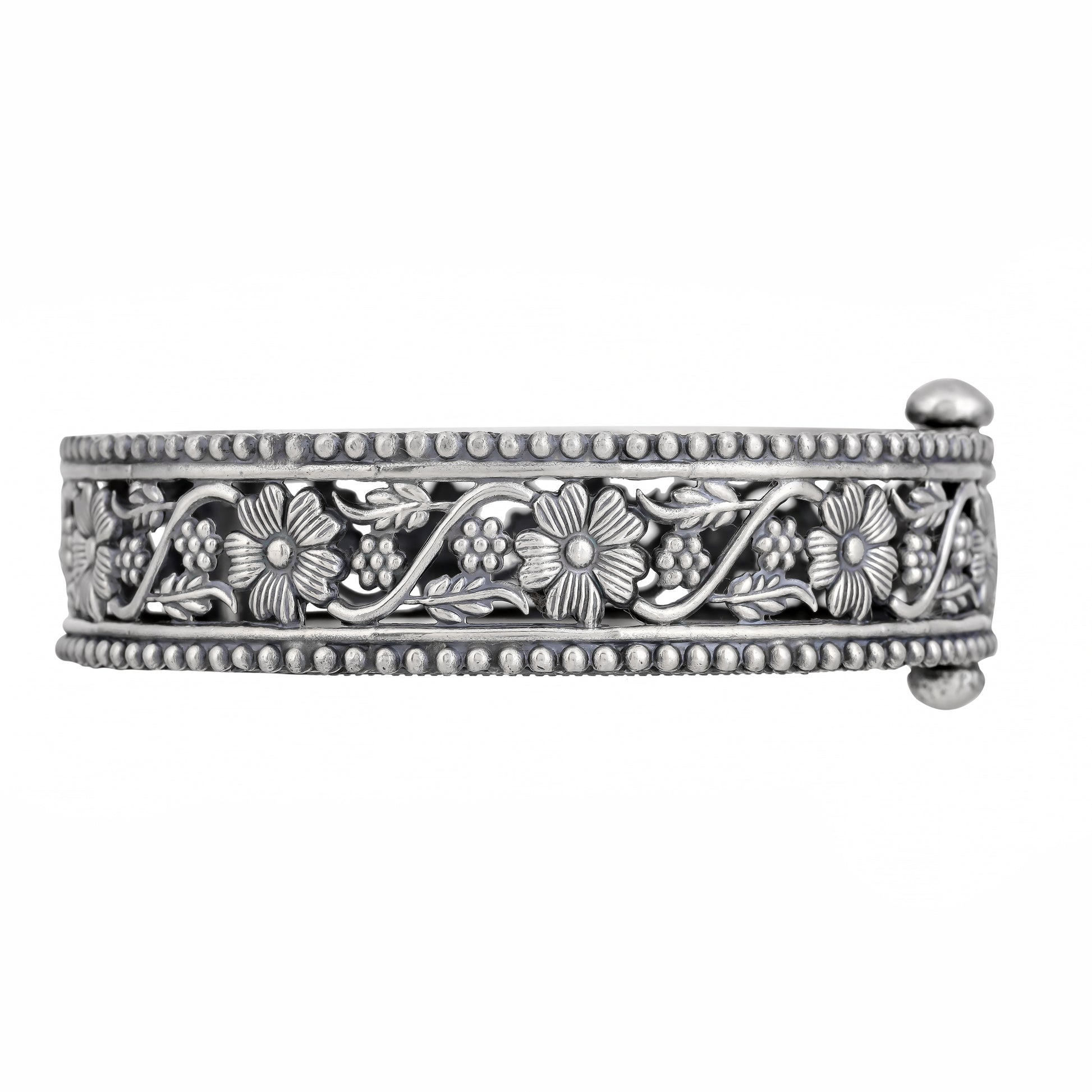 Antique Floral Silver Kada Bangle