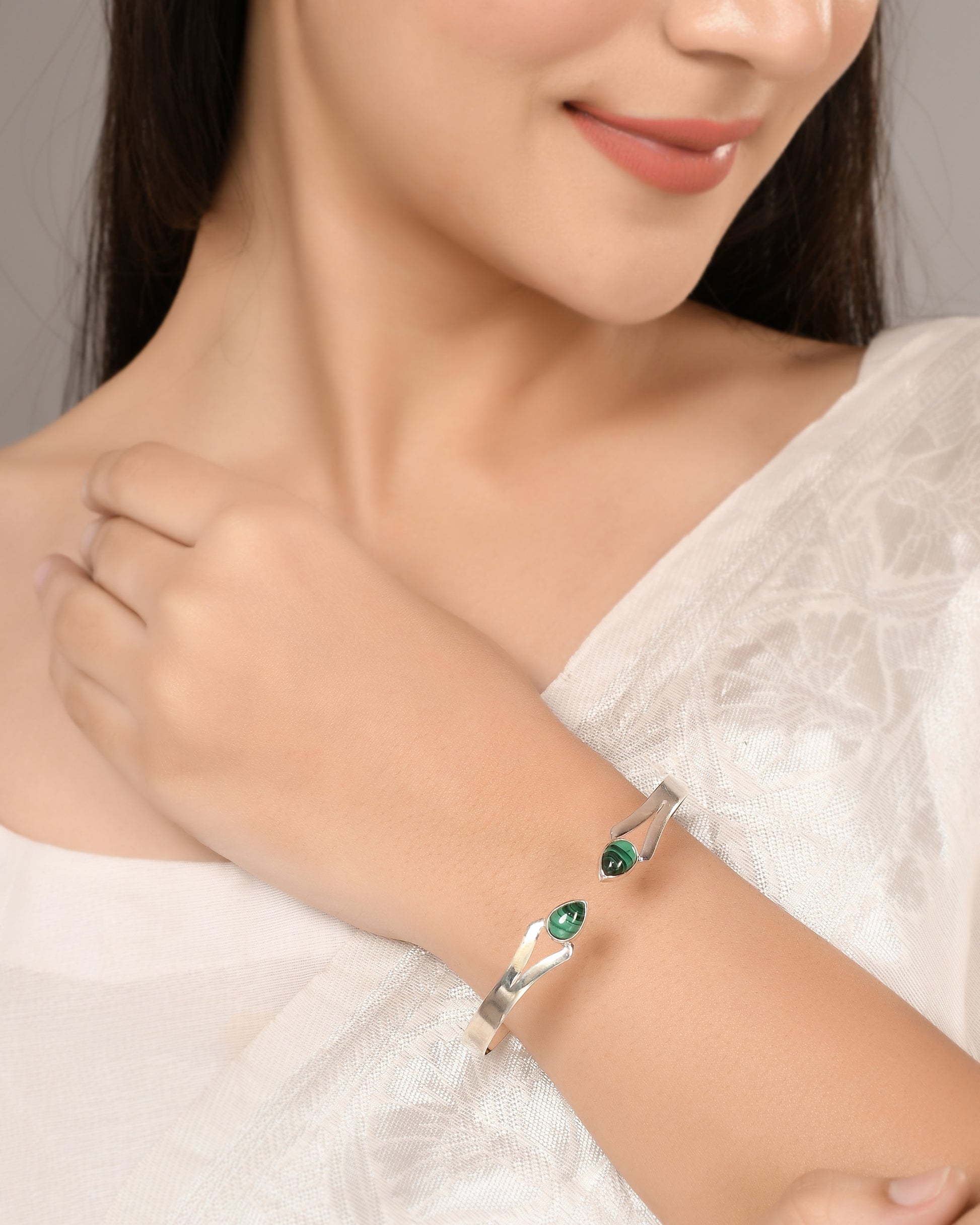 Silver Melachite Openable Kada Bangles/ Bracelet