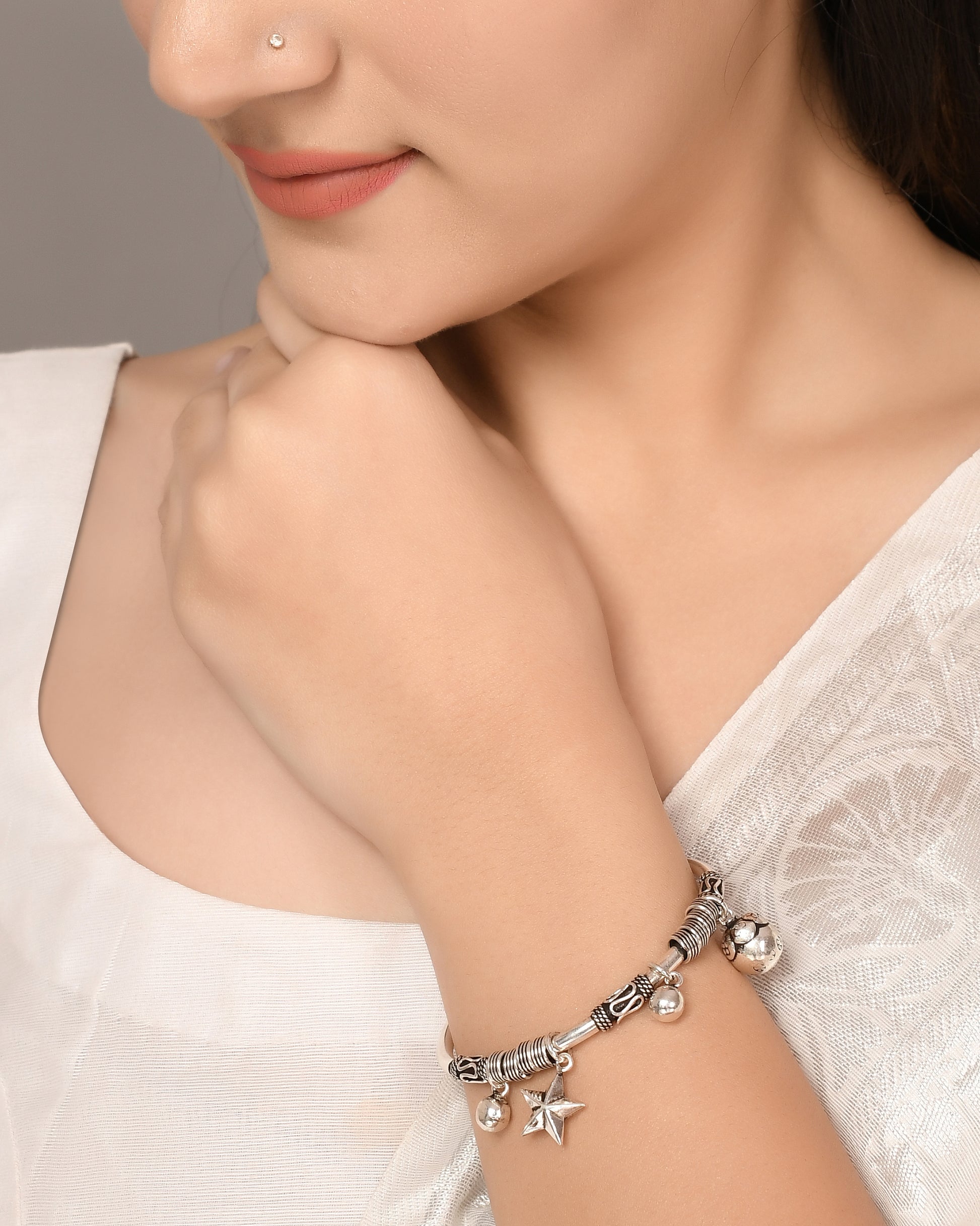 Shine in subtle style with the Silver Star Charm and Droplet Bracelet by Antique Silver Strike. Handcrafted in pure 925 sterling silver, this delicate bracelet features a twinkling star charm paired with a dainty droplet, symbolizing dreams and clarity. Its minimal and adjustable design makes it perfect for daily wear or a thoughtful celestial-inspired gift.