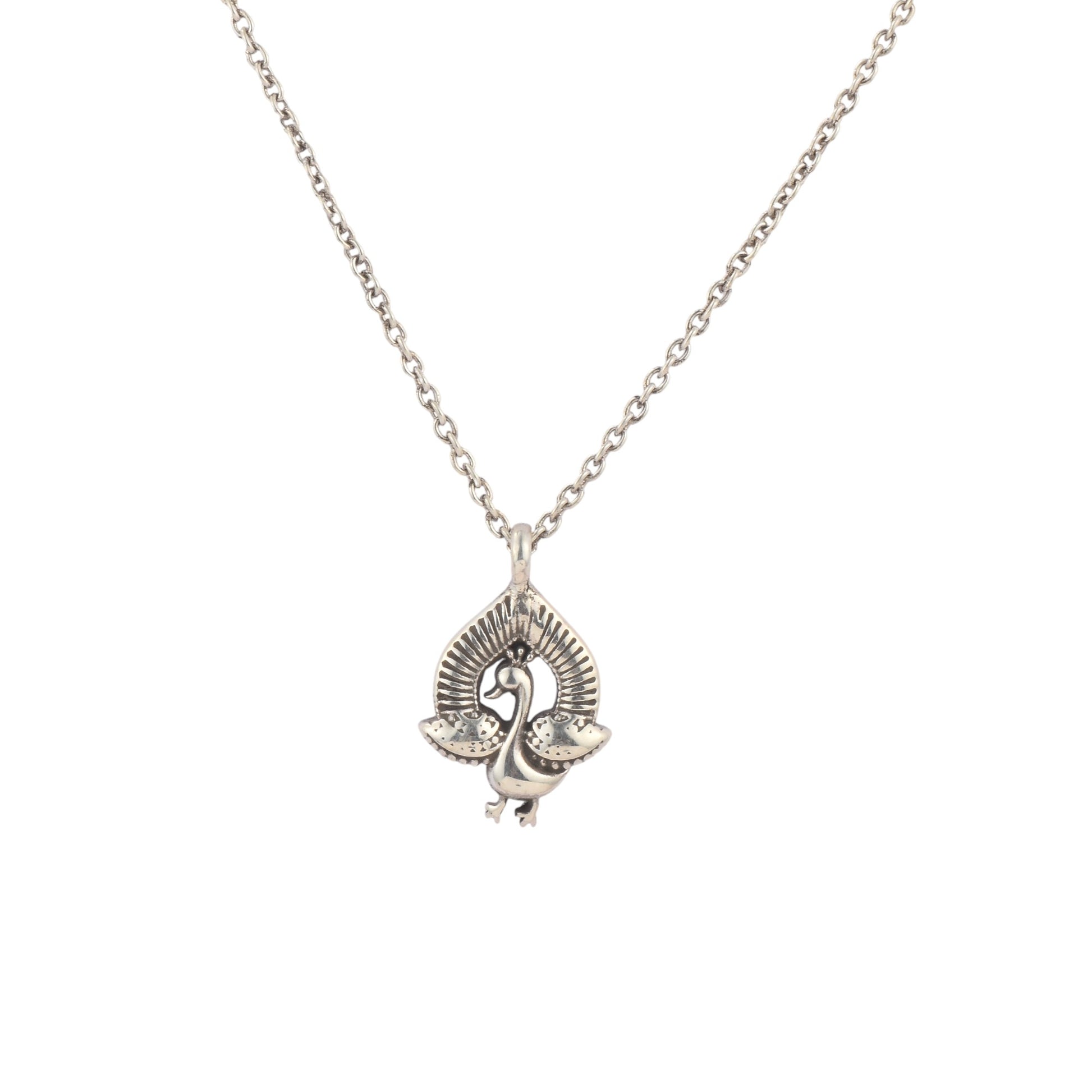 The Silver Dancing Peacock Pendant With Chain from Antique Silver Strike showcases the artistry of skilled craftsmanship. Handmade in pure silver, it features a beautifully carved peacock in a dancing pose—representing pride, beauty, and positivity. With its elegant design and included chain, it’s perfect for daily wear or gifting.