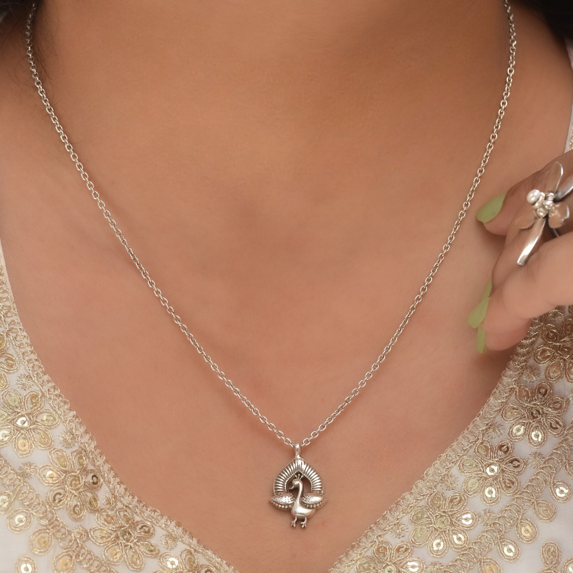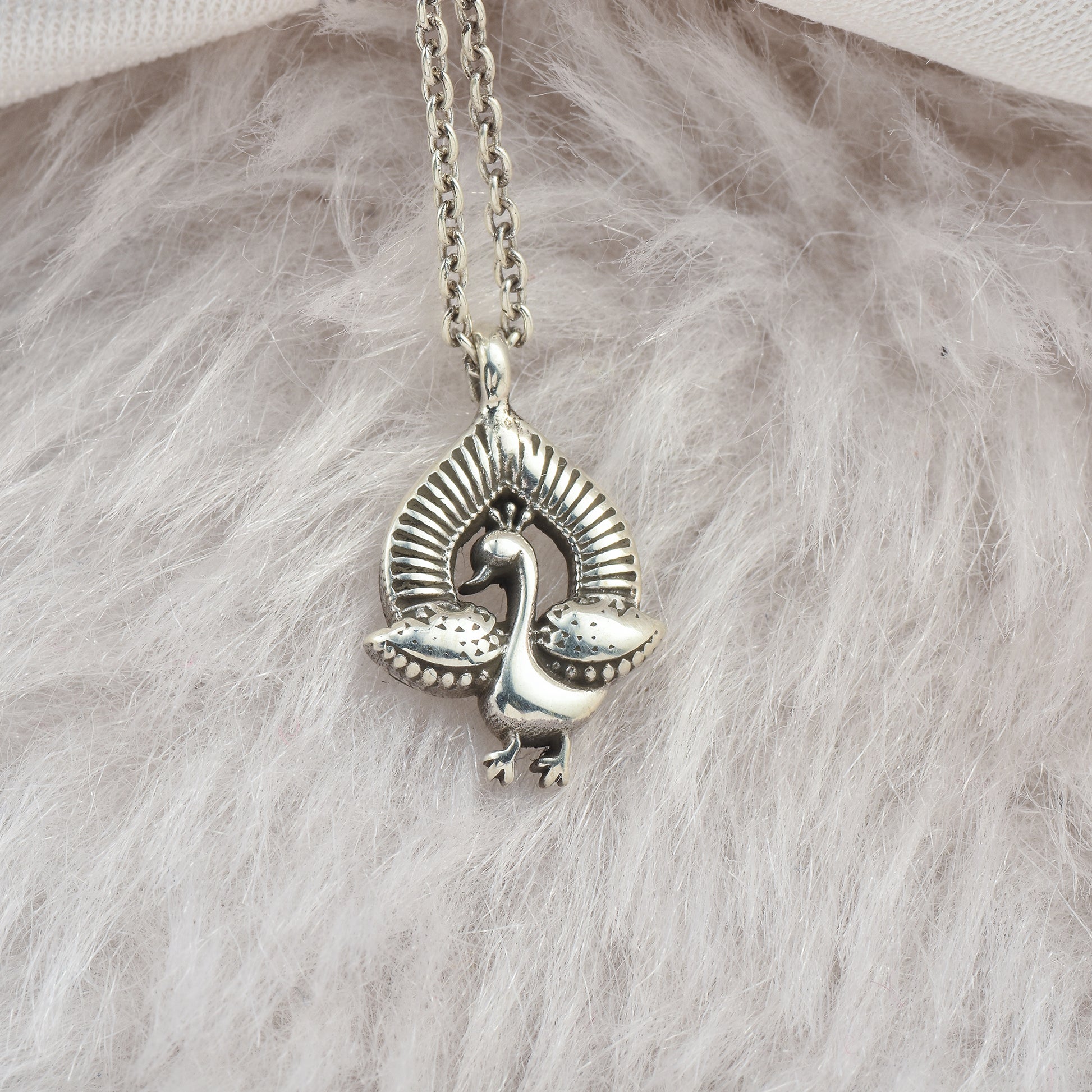 Silver Dancing Peacock Pendant With Chain