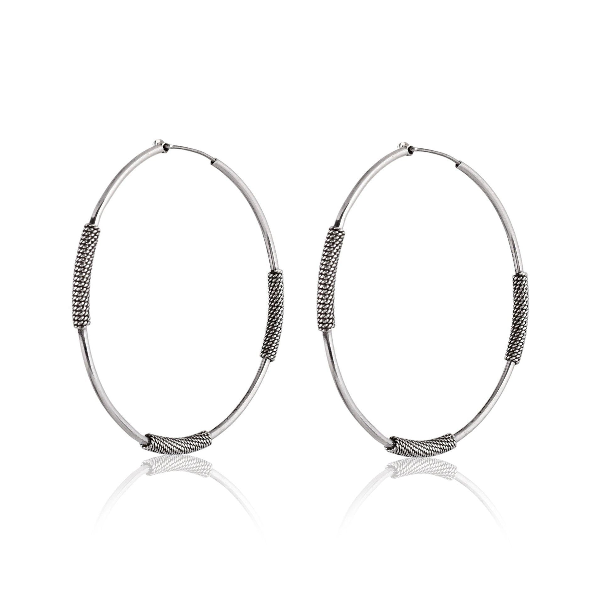 The Silver Tri Spiral Hoop Earrings by Antique Silver Strike are a symbol of flow, balance, and timeless artistry. Handcrafted in pure 925 sterling silver, these hoops feature three elegant spirals that represent continuity and movement. Finished with an oxidized polish, the design stands out with tribal charm and a modern twist—perfect for daily wear or statement styling.