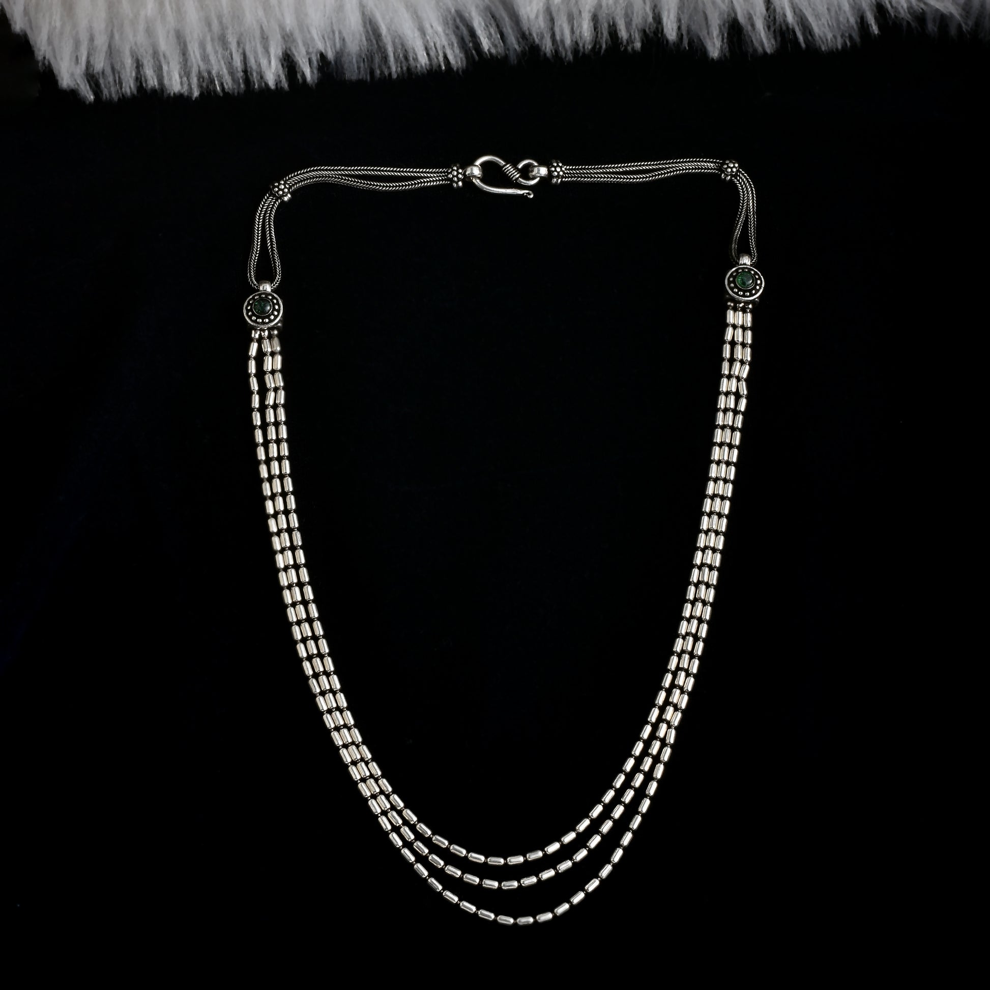 Silver Cyclinderical Beads Tri Layered Neckchain