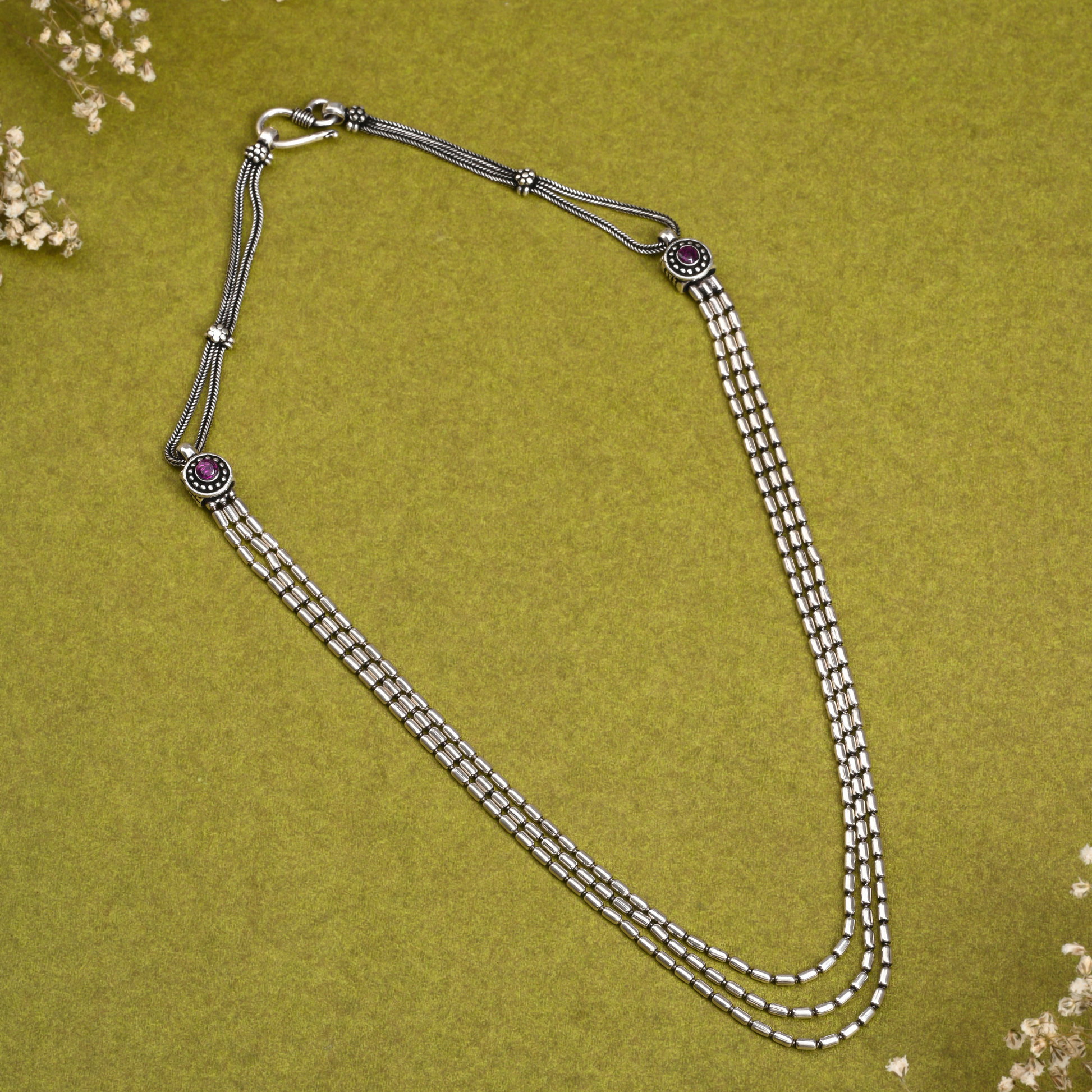 Silver Elegant Cyclinderical Beads Tri Layred Neckchain