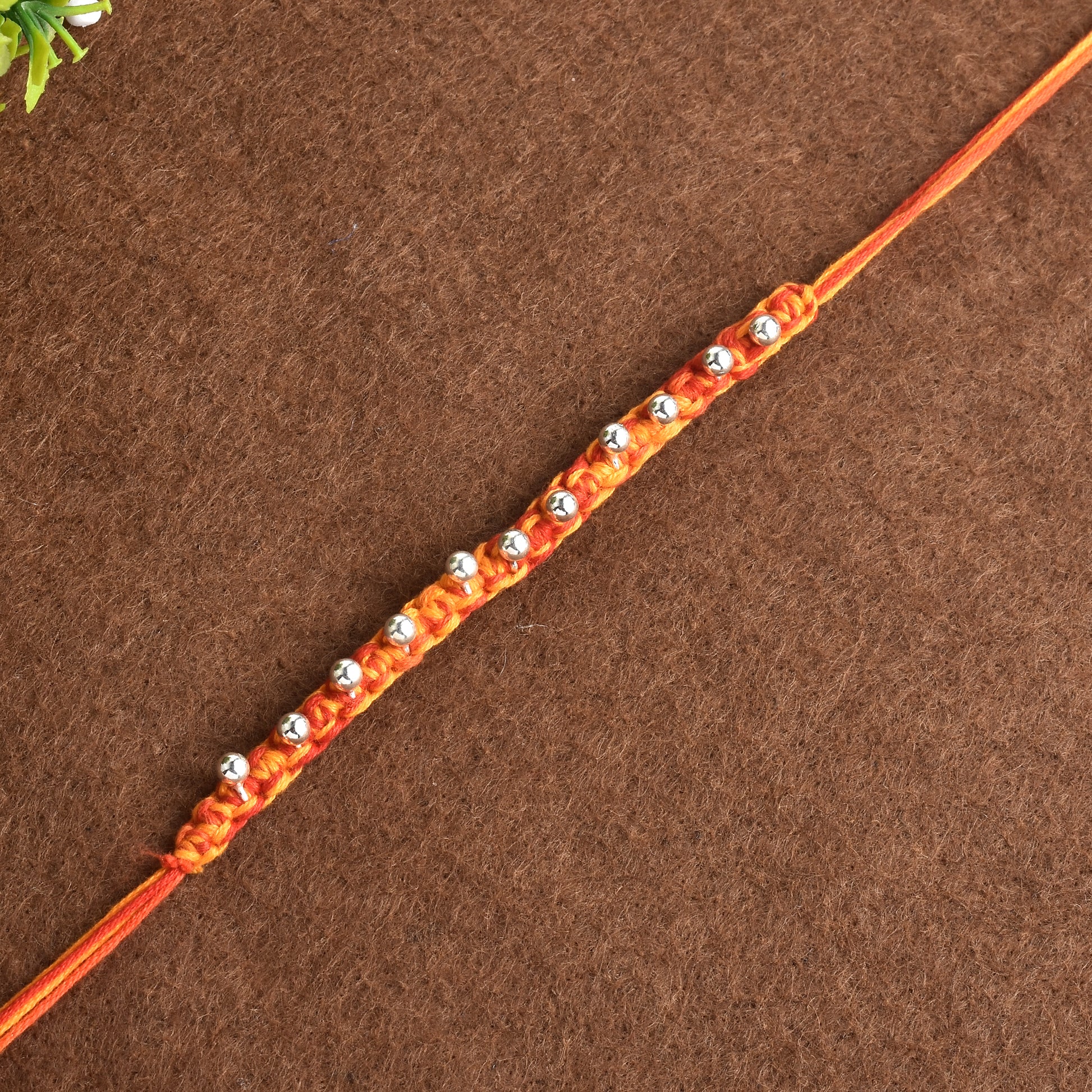 The Silver Ball Beads Rakhi by Antique Silver Strike is a beautiful expression of love and strength. Crafted from 925 sterling silver, this elegant rakhi features a refined arrangement of ball-shaped beads — symbolizing completeness and togetherness. Its clean, minimalistic design is ideal for the modern-day brother who values meaning and simplicity. The smooth finish and sturdy thread make it a thoughtful keepsake that lasts far beyond the festive day.