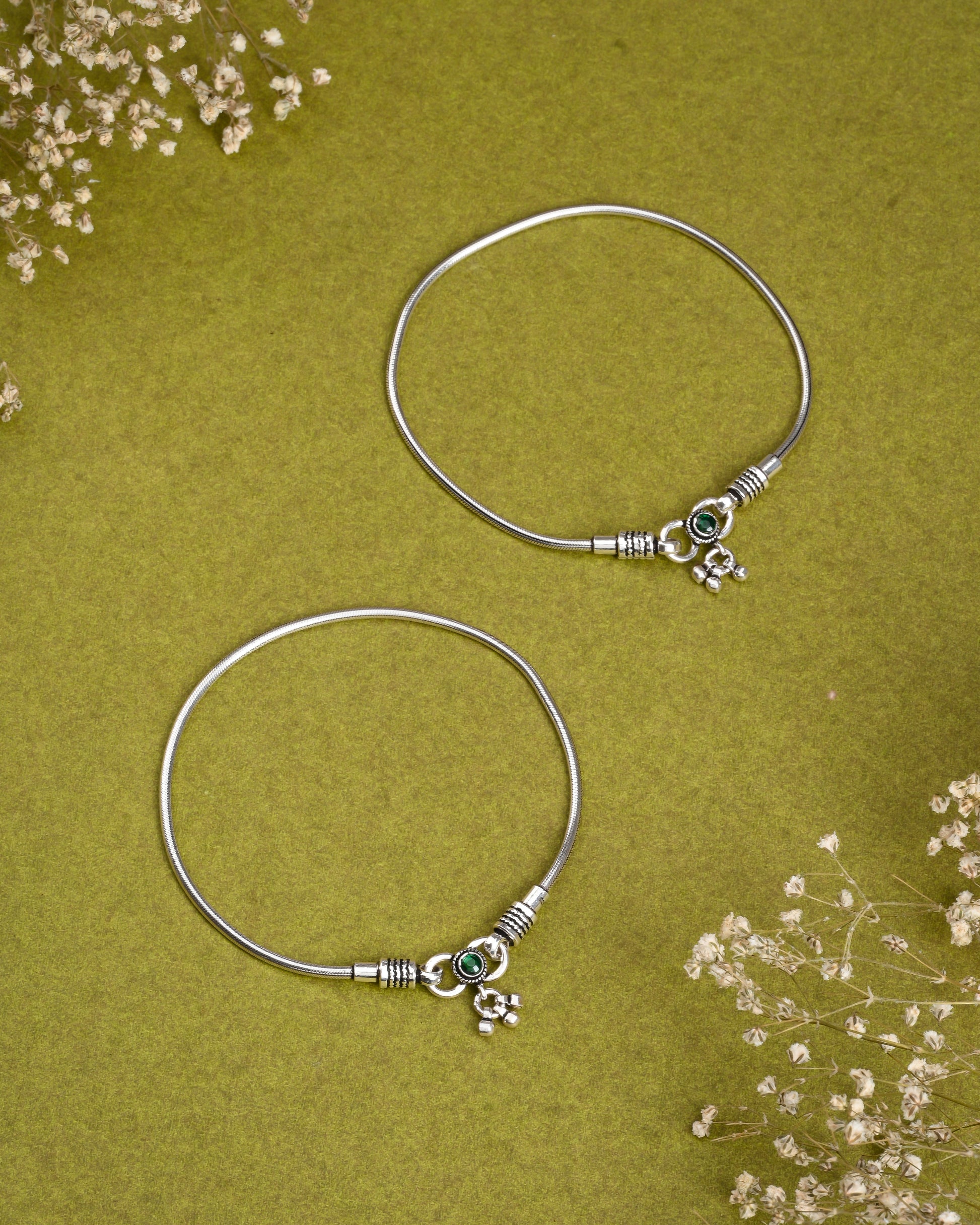 Silver Dazzling Emerald Plain Chain Anklet( Pair)
