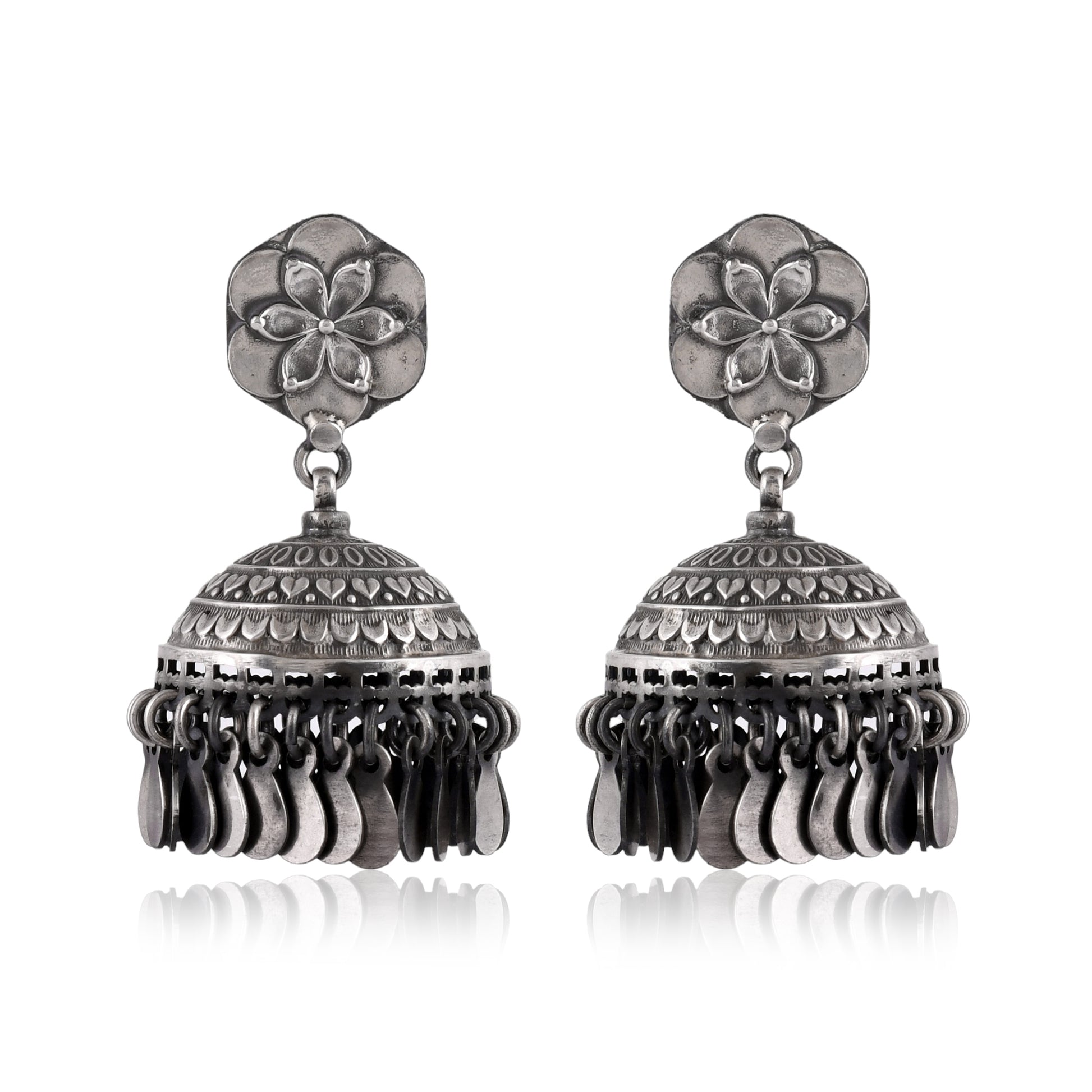 Silver Dazzling Lotus Flower Jhumka Earrings