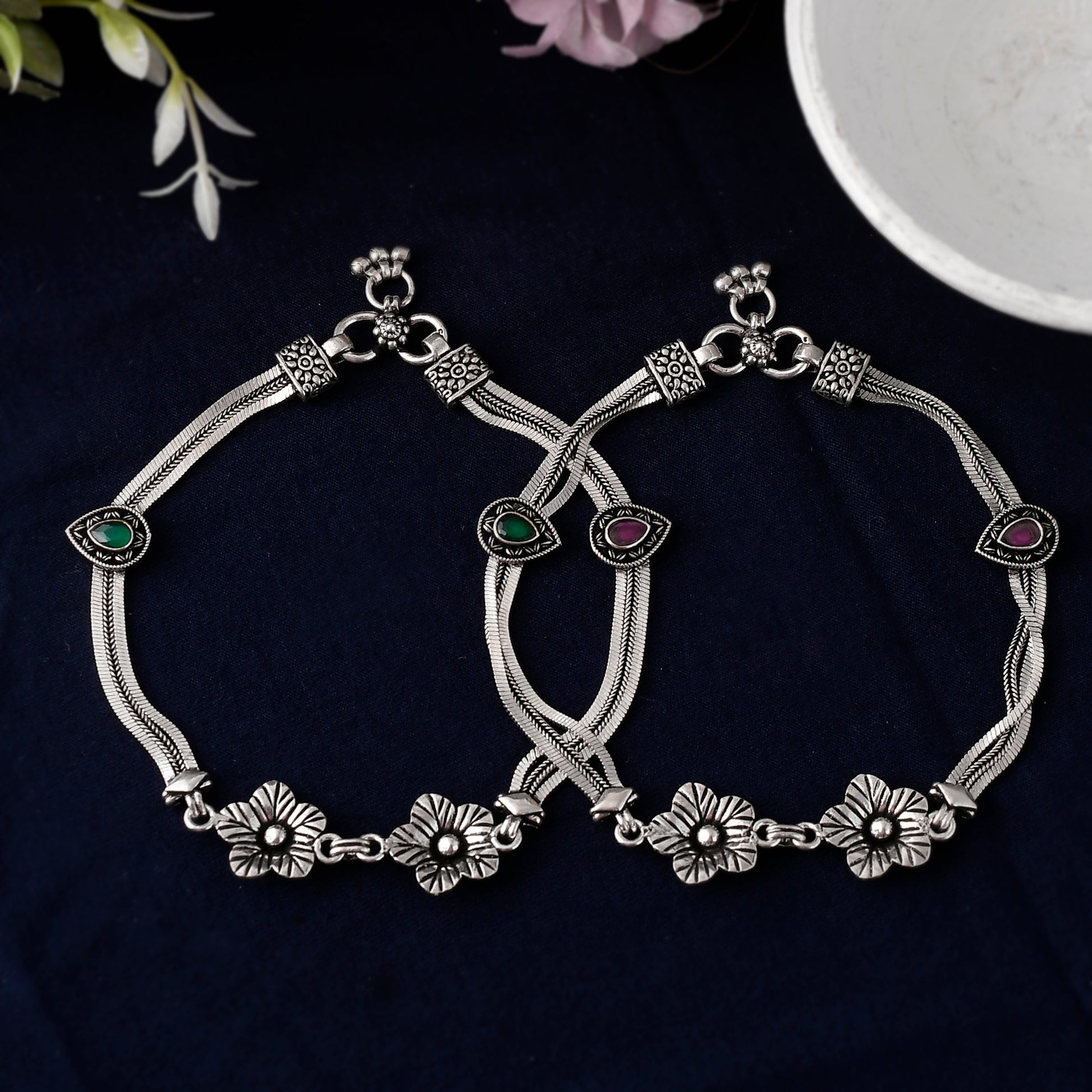 Silver Floral Blossom Anklet( Pair)