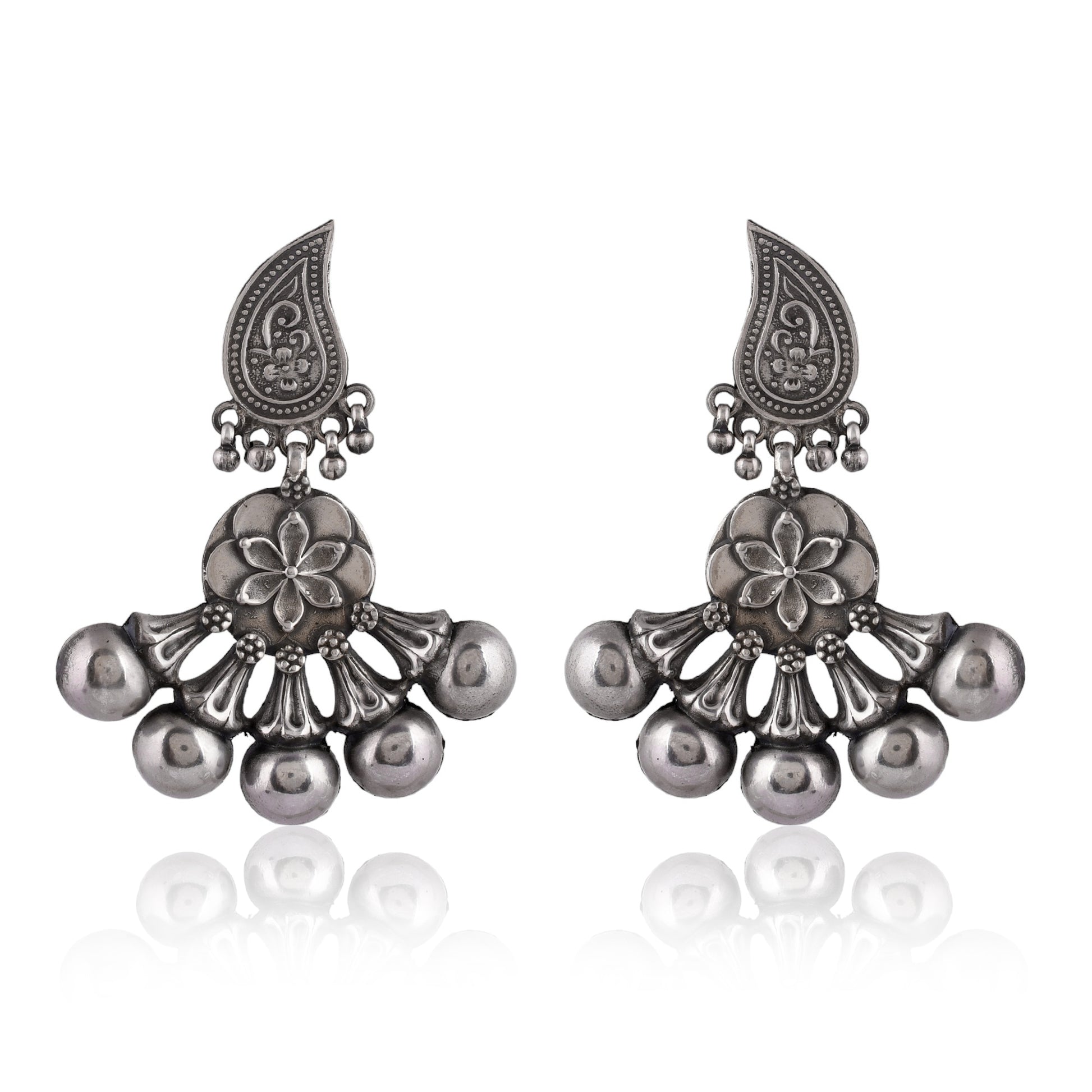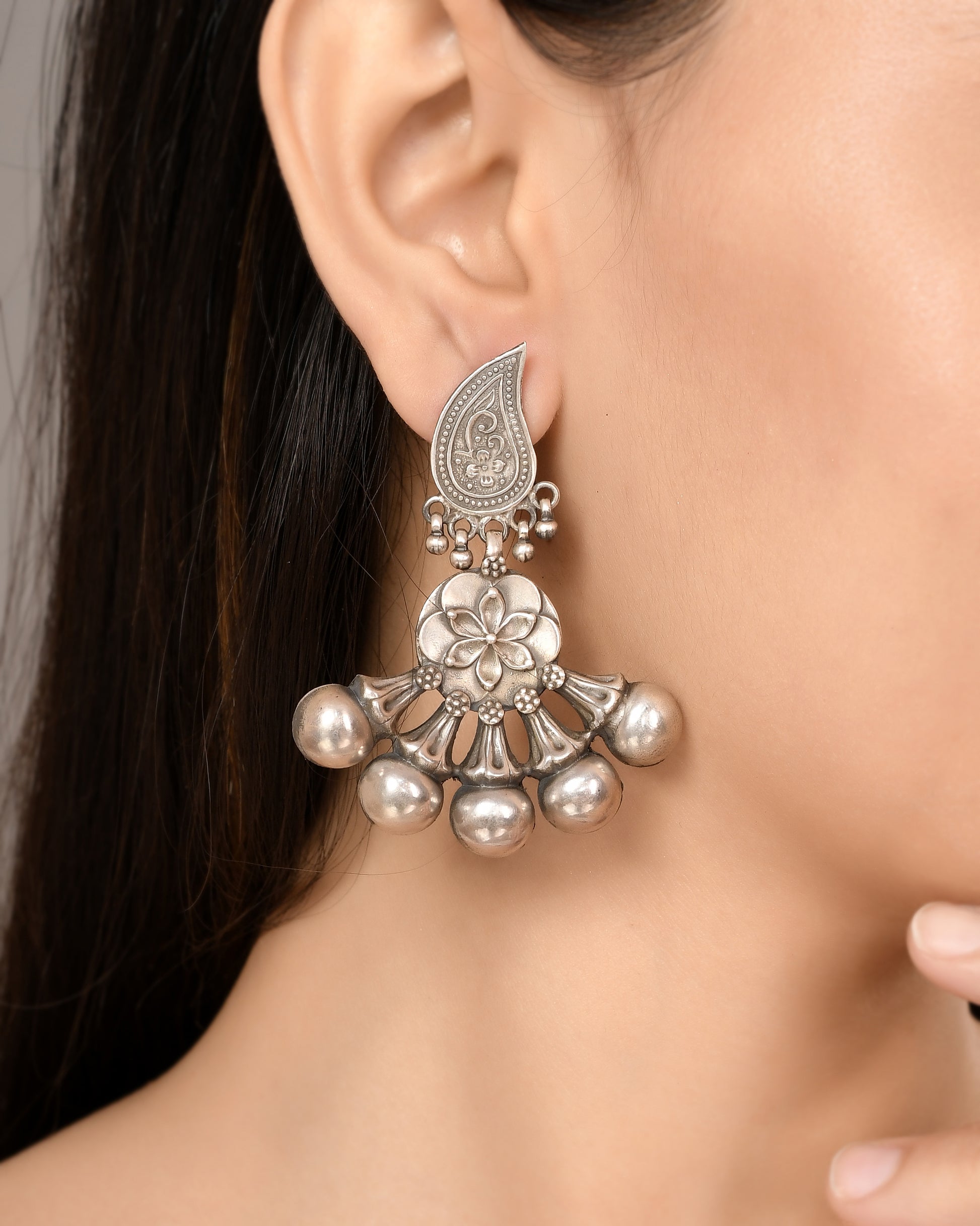 The Silver Flower Bouquet Earrings by Antique Silver Strike blend classic beauty with handmade craftsmanship. Shaped like a delicate bouquet of flowers, these silver earrings are carefully made by hand to bring out every detail. Whether you’re dressing up or keeping it casual, these earrings add a touch of vintage elegance to your style. Comfortable to wear and beautifully designed, they’re the perfect gift or personal treat.