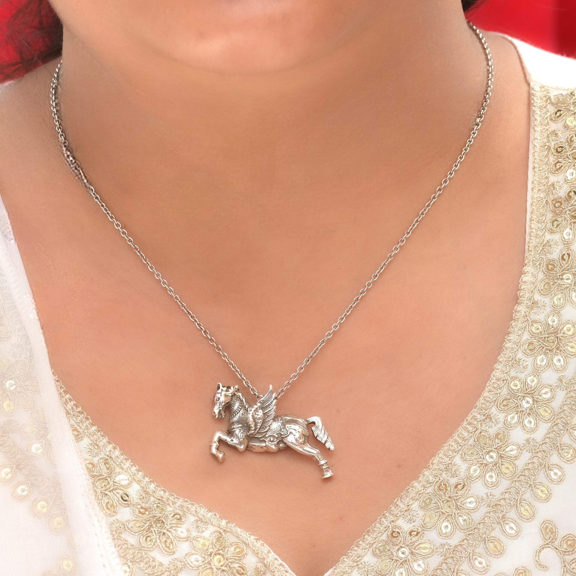 Silver Flying Unicorn Pendant With Chain