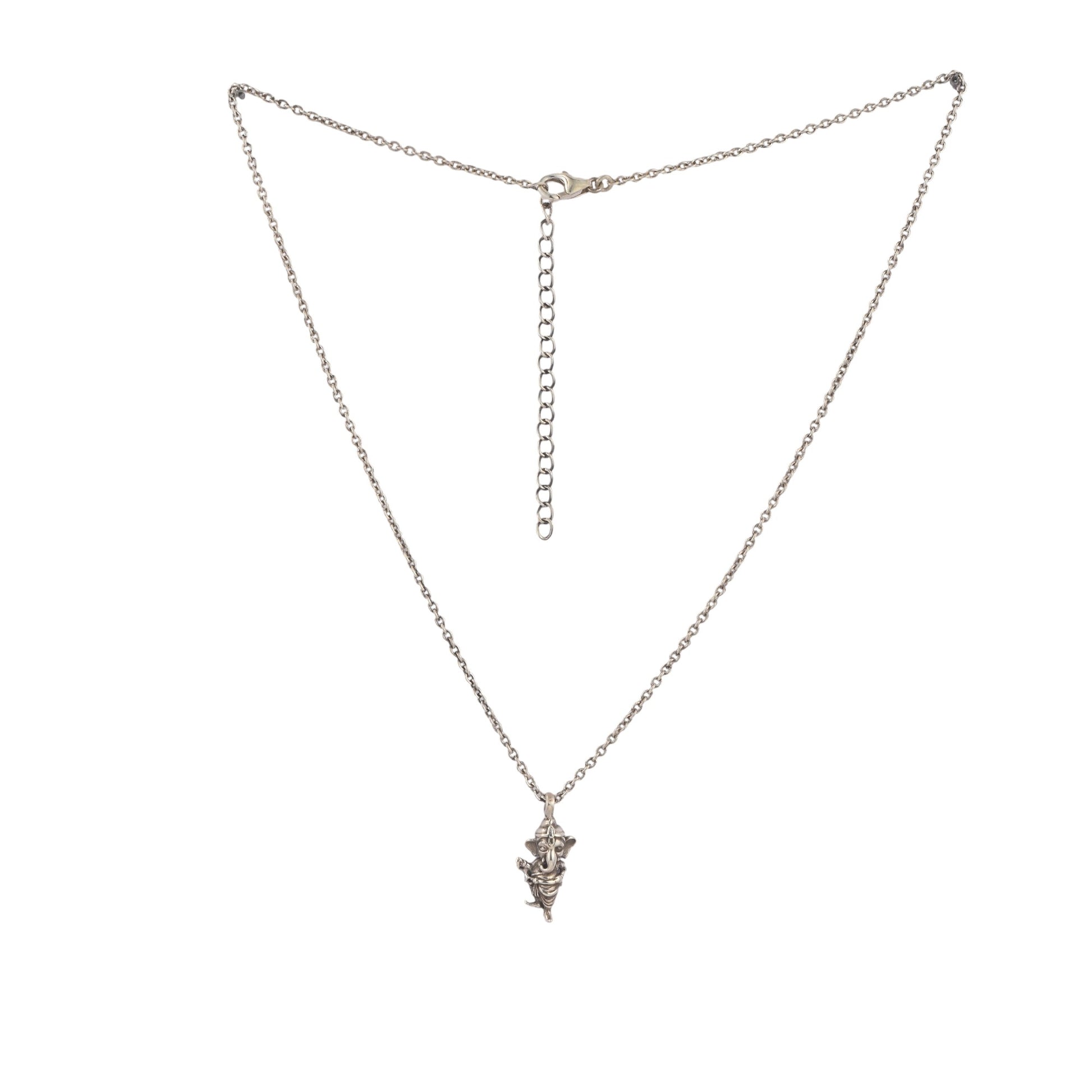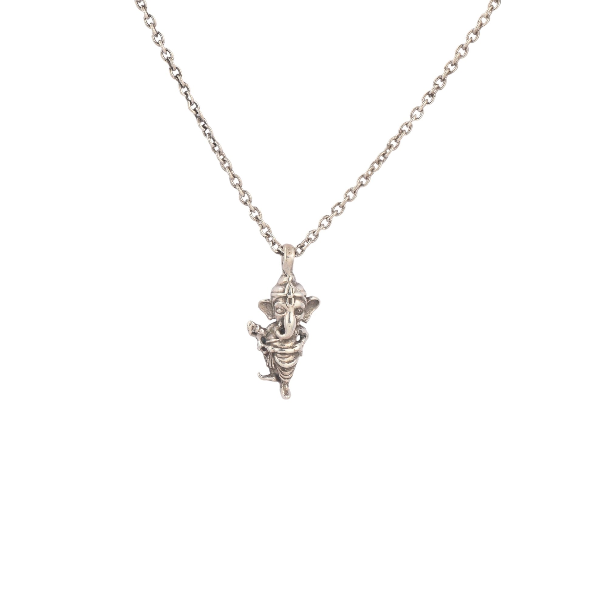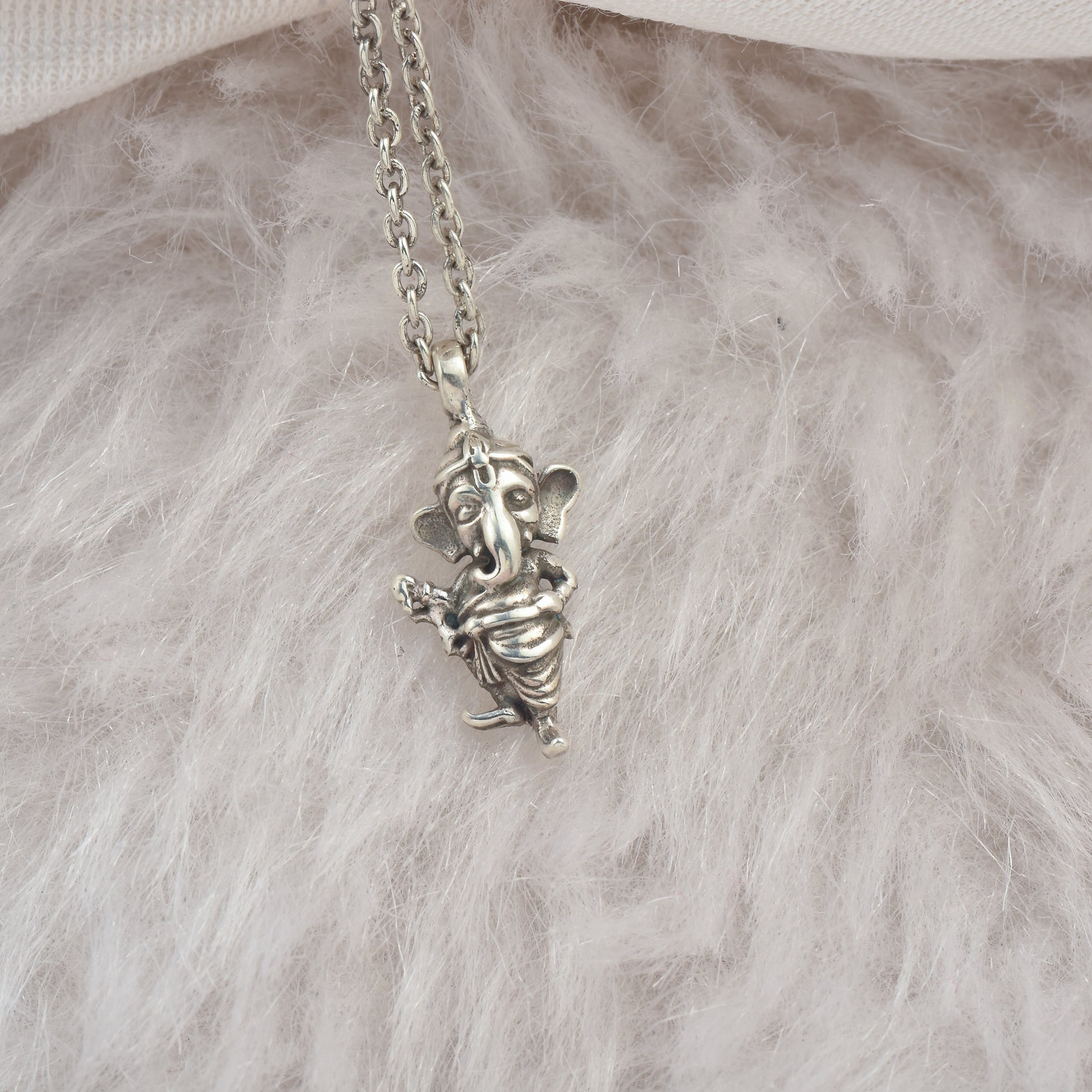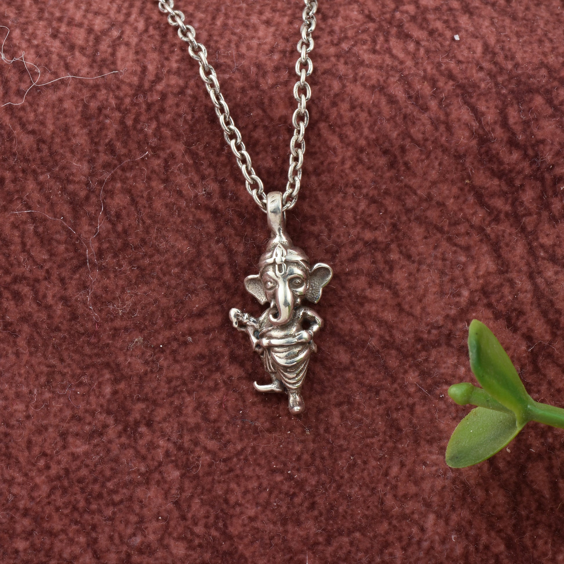 Bring divine blessings wherever you go with the Silver Ganesha Idol Pendant With Chain by Antique Silver Strike. Handcrafted with care, this pure silver pendant features a beautifully detailed Lord Ganesha idol symbolizing wisdom and prosperity. The included silver chain makes it ready to wear or gift. A perfect blend of spirituality and timeless style.