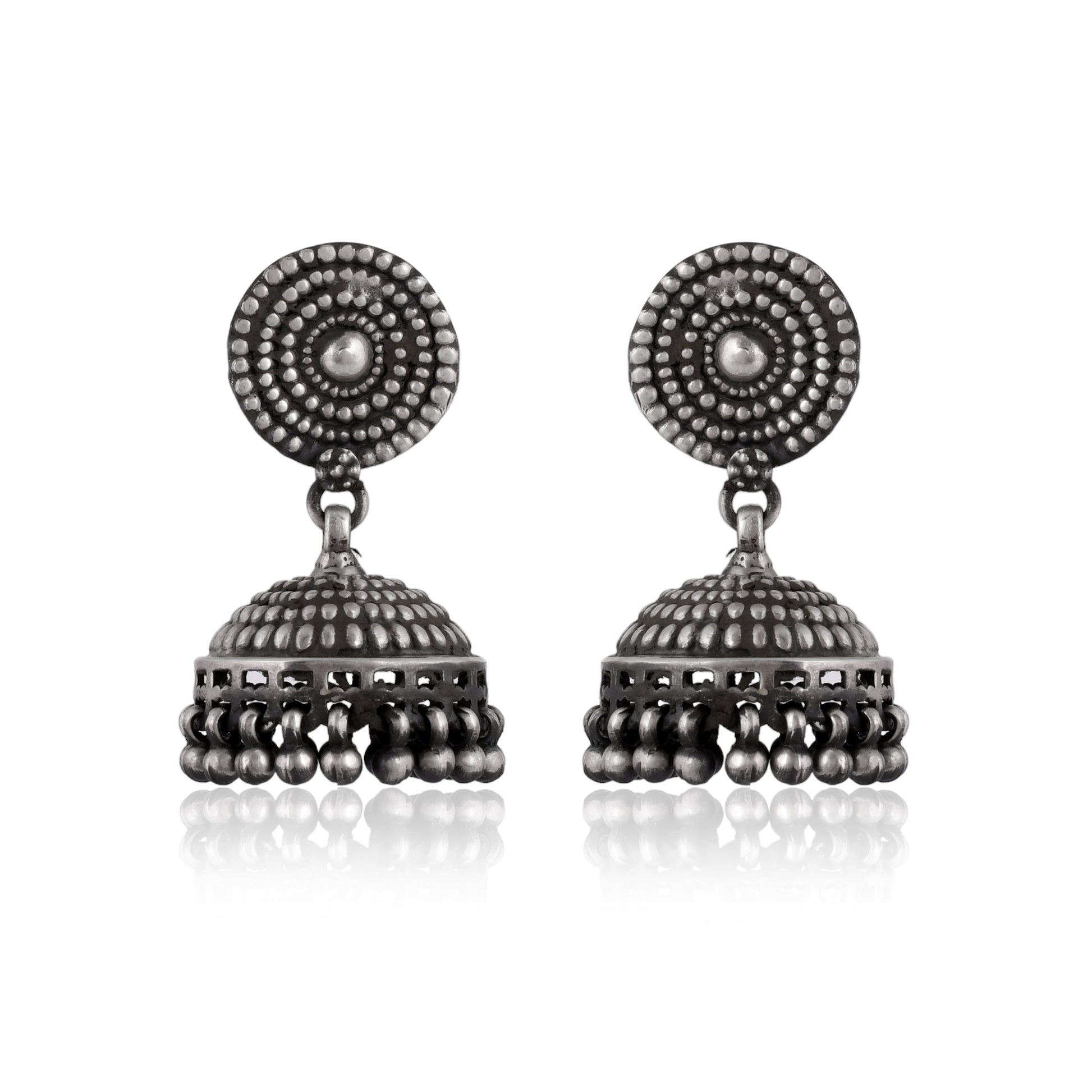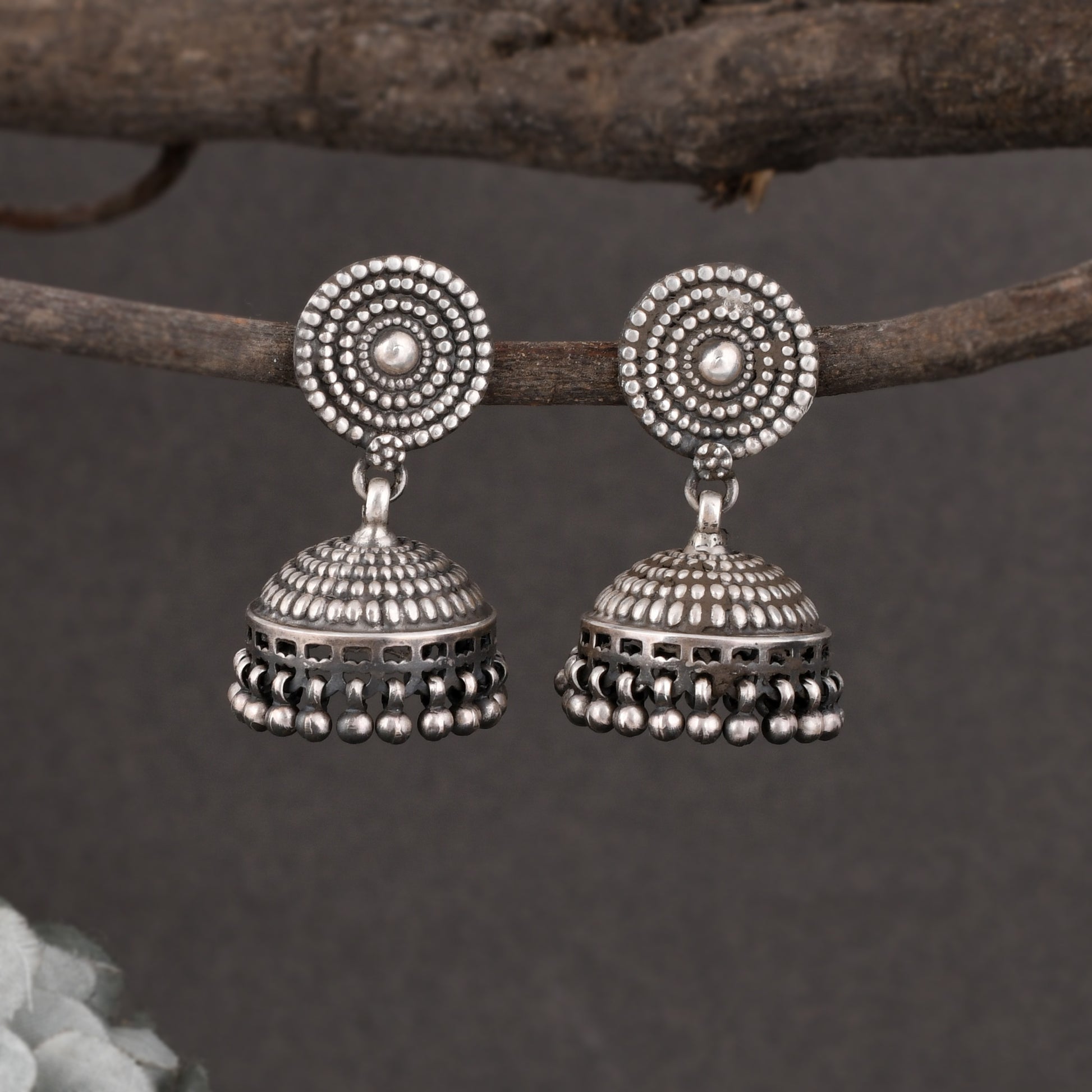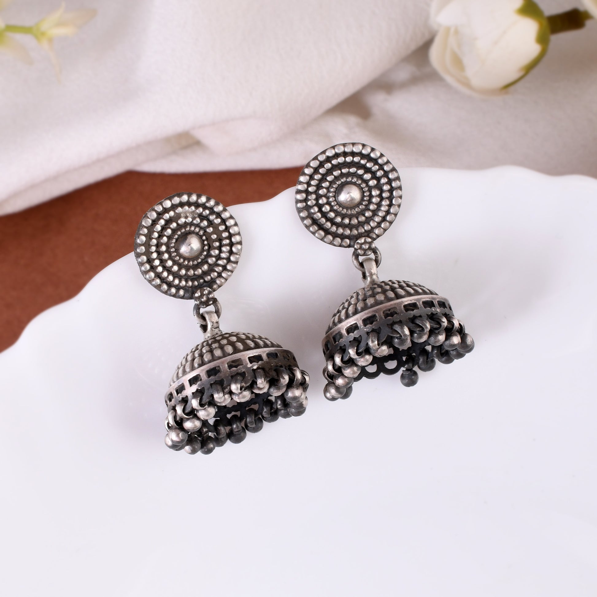 Celebrate curves and culture with Silver Jalebi Jhumka Earrings by Antique Silver Strike. Crafted from pure 925 sterling silver, these handcrafted earrings combine swirling spiral patterns with a traditional jhumka drop, echoing the festive charm of jalebis. The oxidized polish adds a vintage edge, making them ideal for those who love statement silver jewelry with a playful twist.