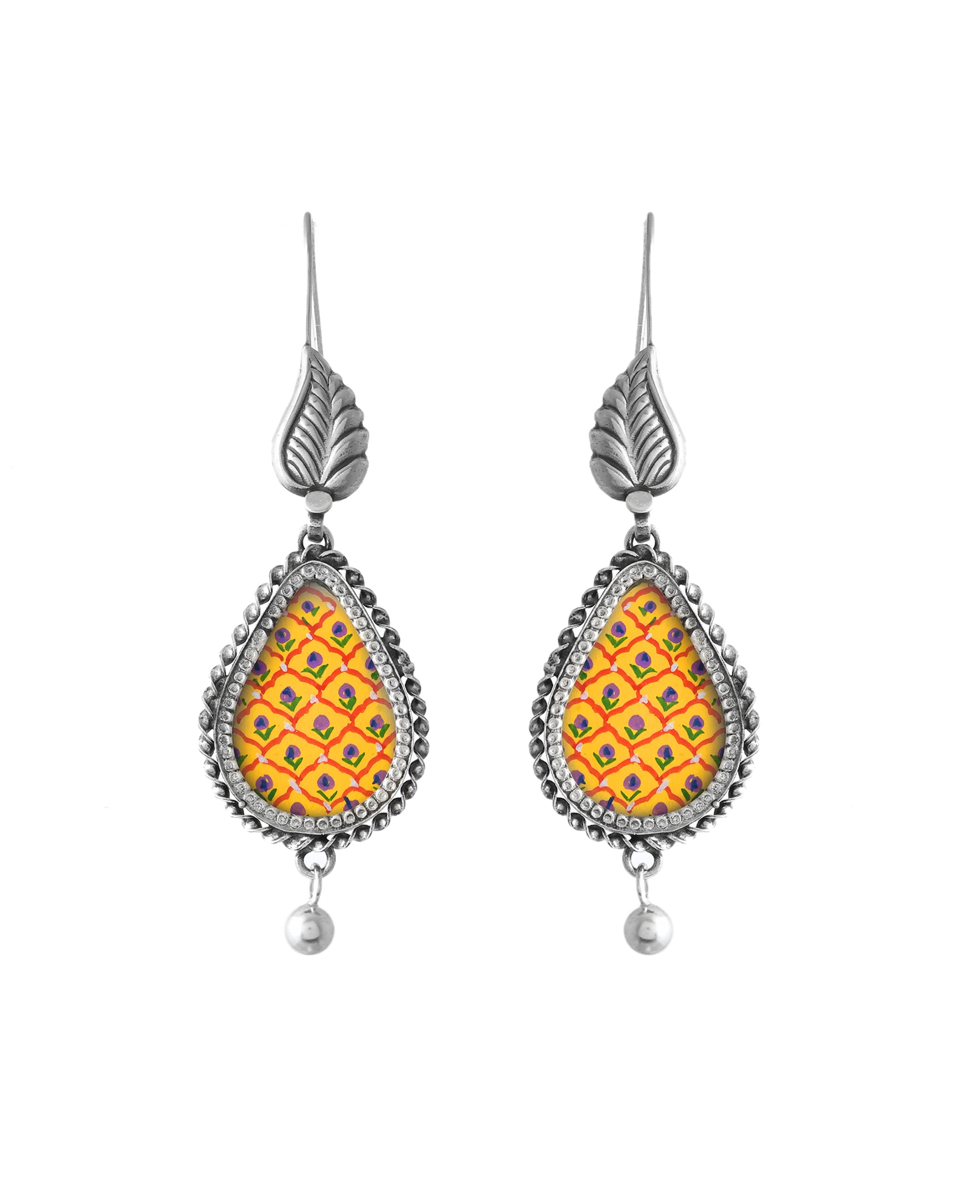 Silver Leaf Drop Hasthkala Earrings