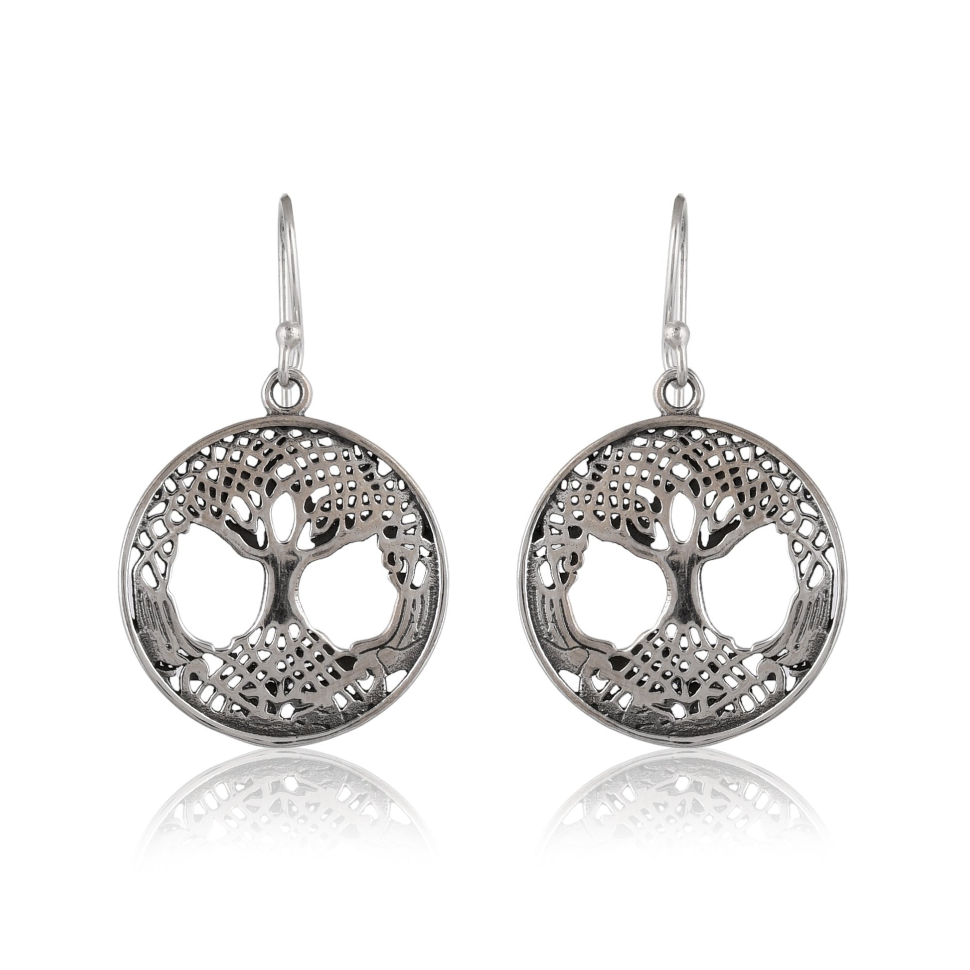 Embrace nature’s wisdom with the Silver Life of Tree Dangle Earrings by Antique Silver Strike. Crafted in pure 925 sterling silver, these earrings feature the symbolic Tree of Life motif, representing strength, growth, and connection. The oxidized finish enhances the fine handcrafted details, while the lightweight design makes them perfect for everyday wear. A meaningful accessory that blends spiritual essence with timeless silver artistry.