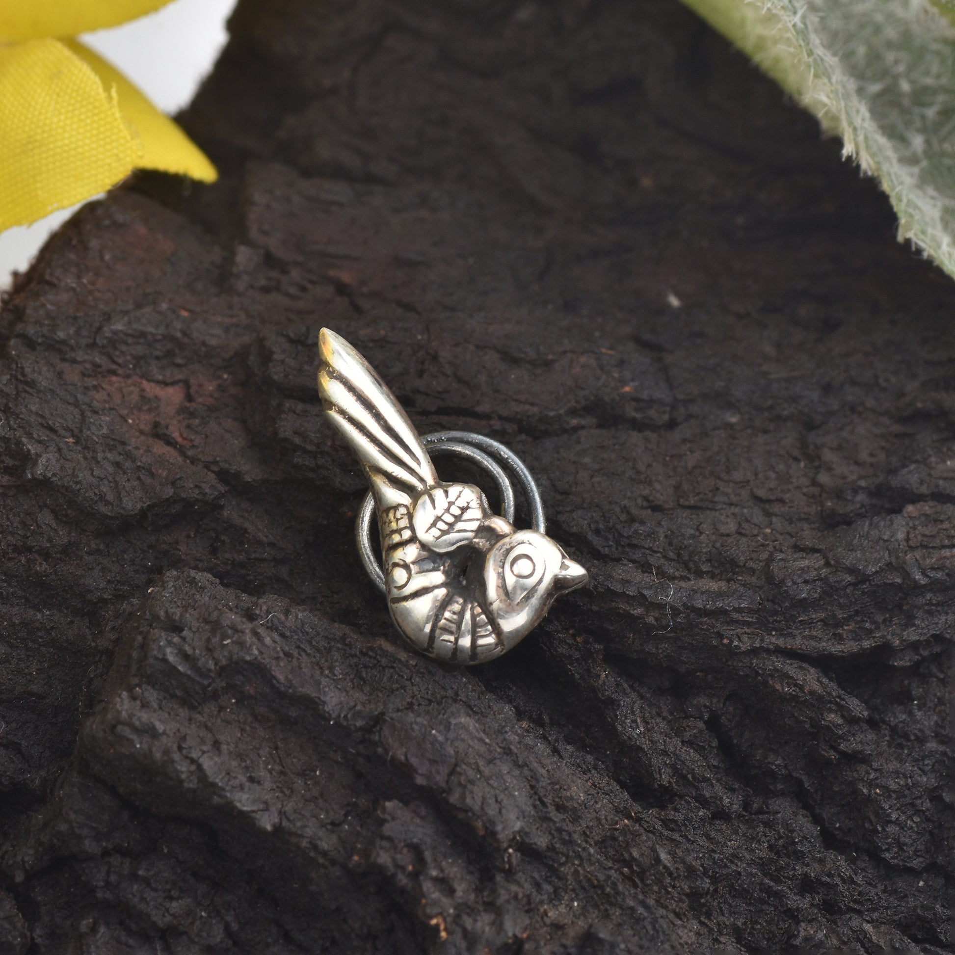 Fly high with elegance wearing Antique Silver Strike’s Silver Little Maina Bird Nosepin (Wire/Clip-on). Made from pure 925 sterling silver, this handcrafted nosepin features a charming Maina bird motif, beautifully detailed and finished with a subtle oxidized tone. Its lightweight design ensures comfort, while the option of wire or clip-on allows flexible wear. Perfect for adding a touch of whimsy and culture to your look.