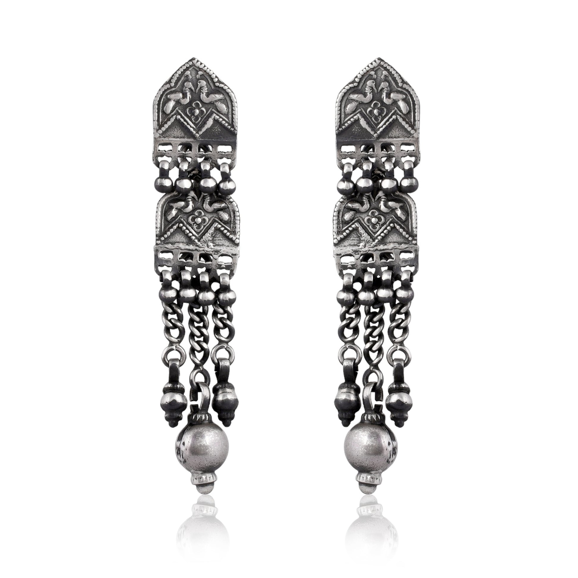 Silver Mor Tribal Jhumka Earrings
