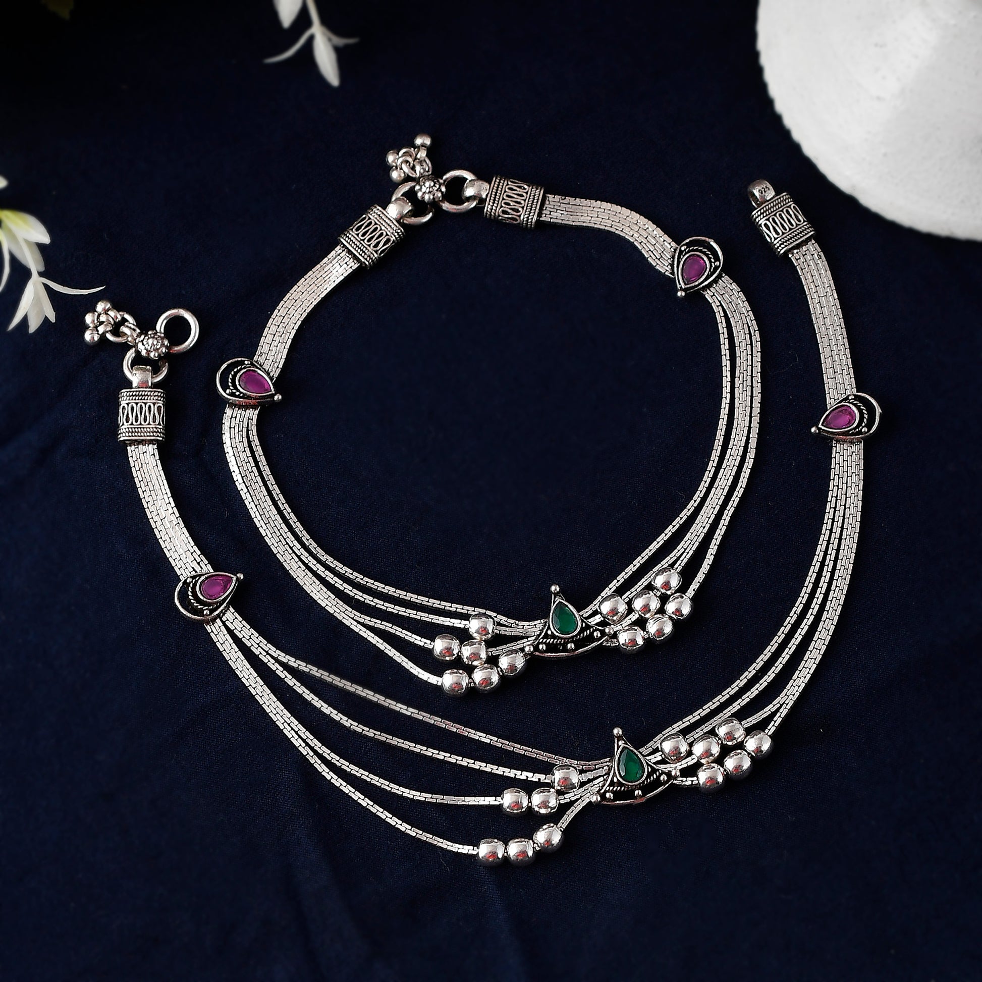 Antique Silver Strike presents the Silver Nupur Chain Layers Anklet, a stunning creation inspired by the rhythm of traditional jewelry. Made from pure 925 silver, it features multiple delicate layers that move gracefully with every step. The soft tinkling sound and intricate craftsmanship bring an elegant aura of heritage and beauty. Perfect for festive occasions or everyday wear, this anklet embodies the timeless essence of Indian adornment with a touch of contemporary finesse.