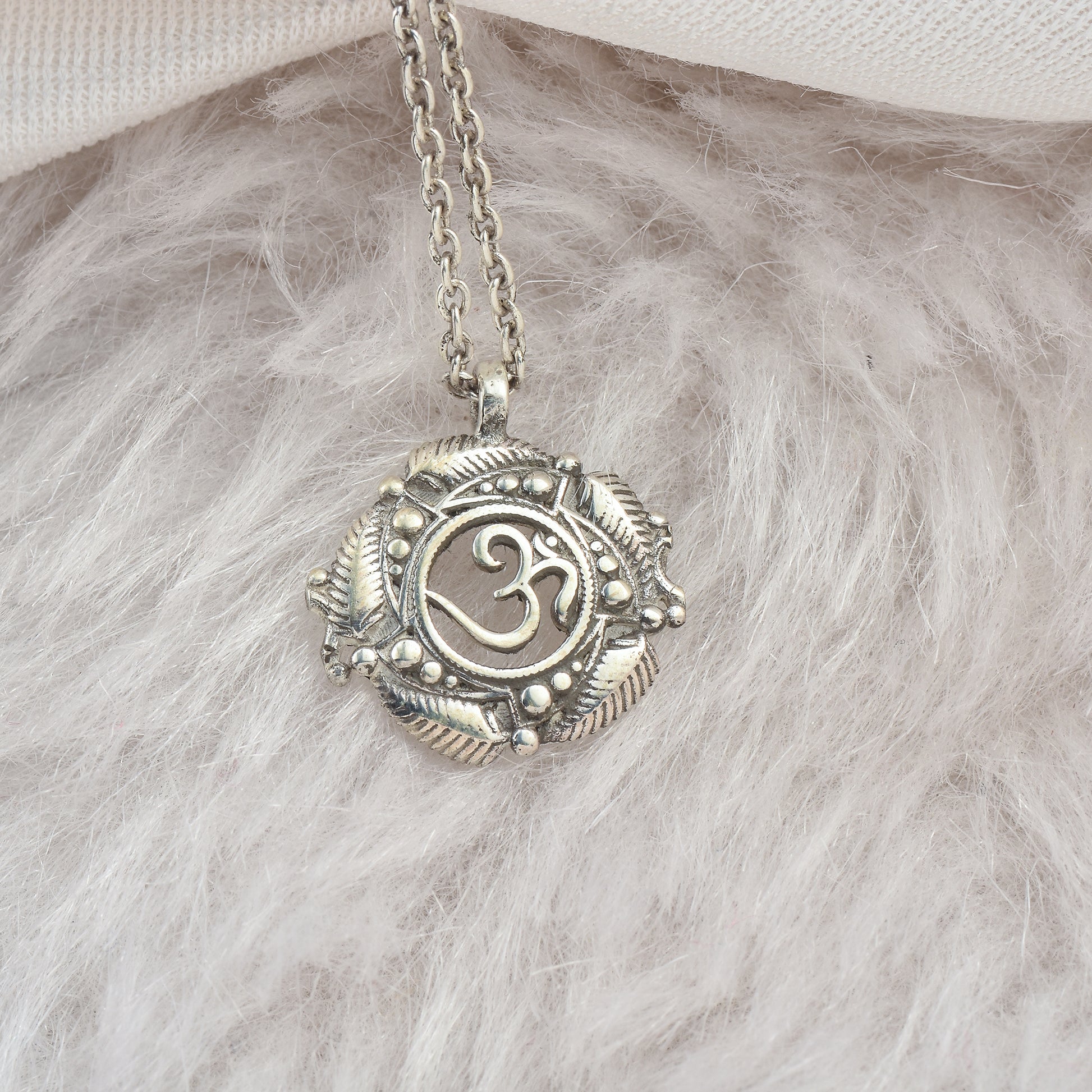 Silver Om Chakra Pendant With Chain