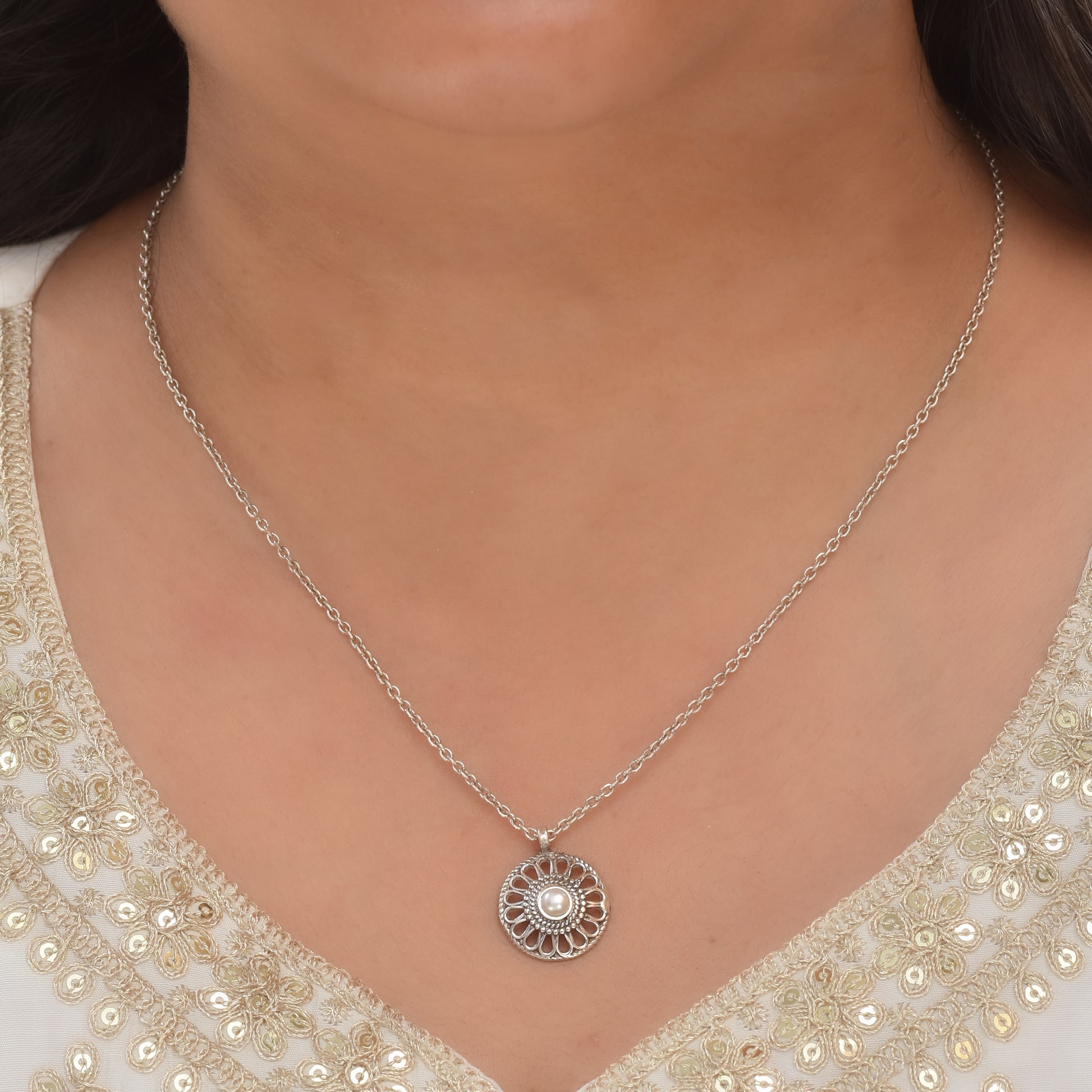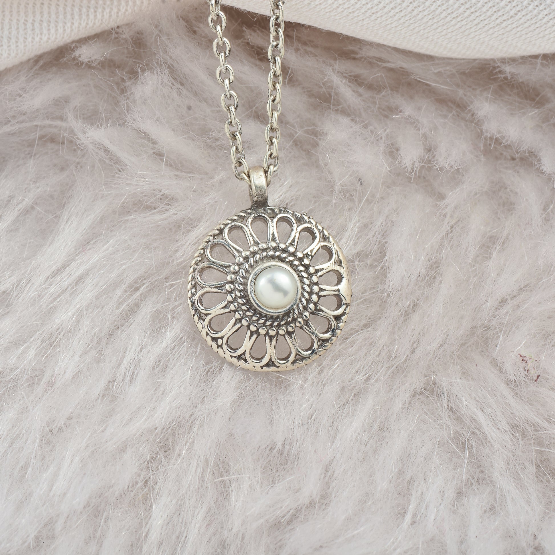 Silver Pearl Wheel Pendant With Chain