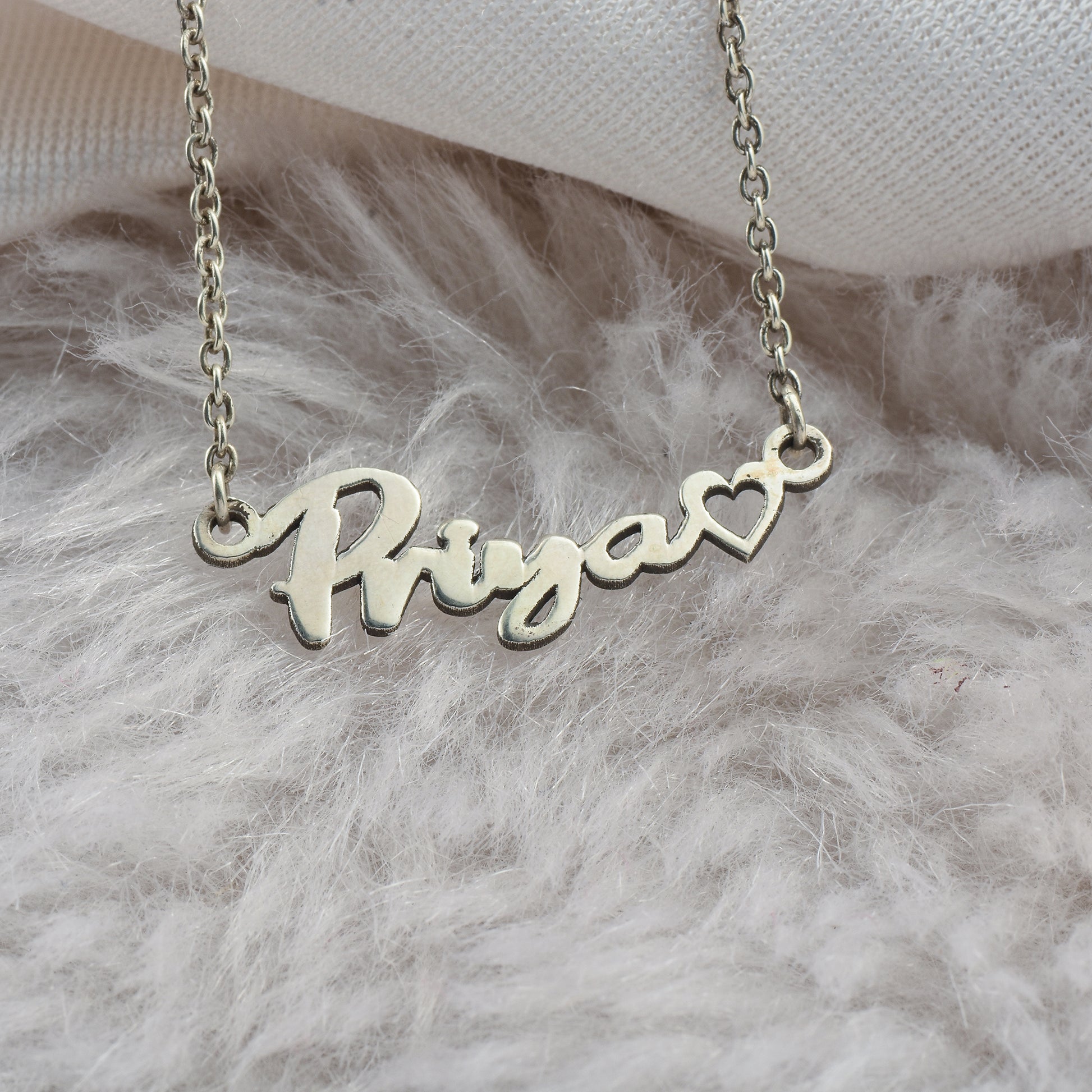 The Silver Personalized Name Necklace With Heart by Antique Silver Strike is a symbol of love and individuality. Each piece is handmade to perfection, featuring your chosen name beside a delicate silver heart. Stylish yet sentimental, it’s perfect for expressing self-love or gifting to someone close. A timeless keepsake for every occasion.