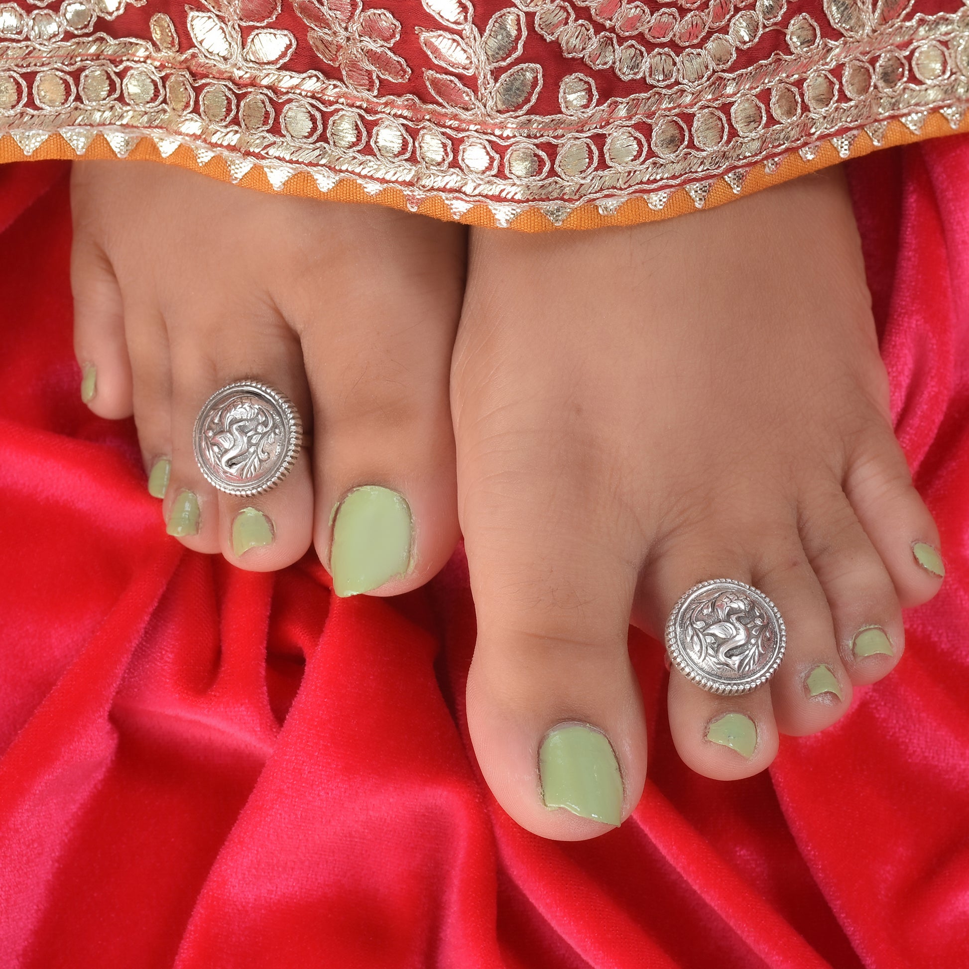 Step into elegance with Antique Silver Strike’s Silver Swan Mandala Toe Rings. Handcrafted in pure 925 sterling silver, these toe rings feature a stunning mandala design beautifully paired with an elegant swan motif — symbolizing purity and grace. The oxidized finish enhances the intricate detailing, giving them a rich, antique charm. Adjustable and comfortable to wear, they’re perfect for festive occasions, beach outings, or everyday styling. A blend of traditional artistry and modern sophistication.