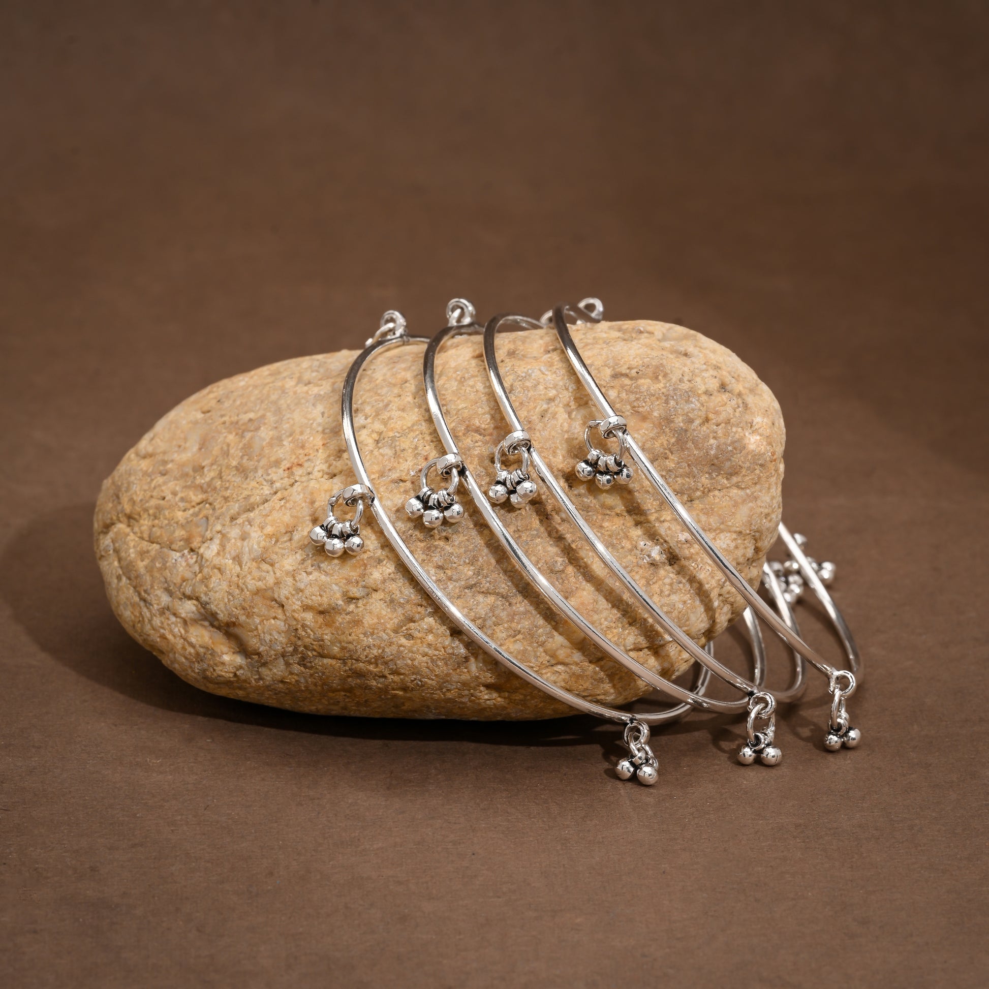 Bring tradition alive with the Silver Tinkling Bells Kada Bangle from Antique Silver Strike. Handcrafted in pure 925 Sterling Silver, this bangle features delicately placed ghungroos that emit a soft, melodic chime with every movement. Its antique oxidized finish and intricate detailing reflect India’s rich cultural heritage. Whether worn with ethnic wear or fusion outfits, this kada adds a charming rhythm to your presence—making it a timeless treasure for those who love classic elegance with a playful touch.